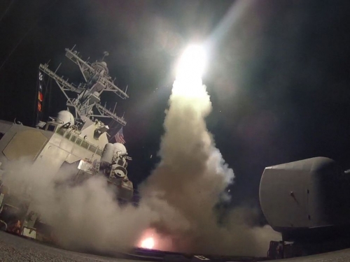 Tên lửa Tomahawk của Mỹ phóng từ chiến hạm nhằm vào căn cứ không quân Syria. (Ảnh: Getty).