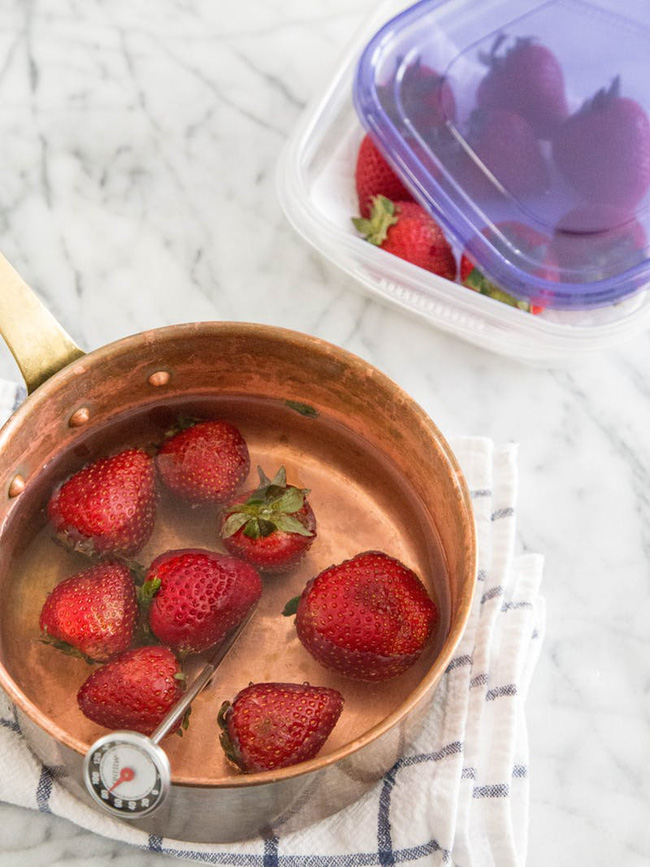 Đầu bếp Harold McGee - cha đẻ của phương pháp này – đã khám phá ra nước nóng sẽ giúp làm chậm quá trình mốc của dâu, từ đó giữ cho dâu không bị nhũn và luôn căng mọng, giòn ngọt. Sau nhiều lần thử nghiệm, ông đã rút ra công thức "vàng" như sau: Ngâm dâu 30 giây trong nhiệt độ 50 độ C.