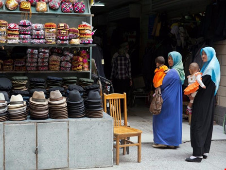 Các bà mẹ dân tộc Duy Ngô Nhĩ bế con tại TP Aksu, khu tự trị Tân Cương, Trung Quốc. Ảnh: AP