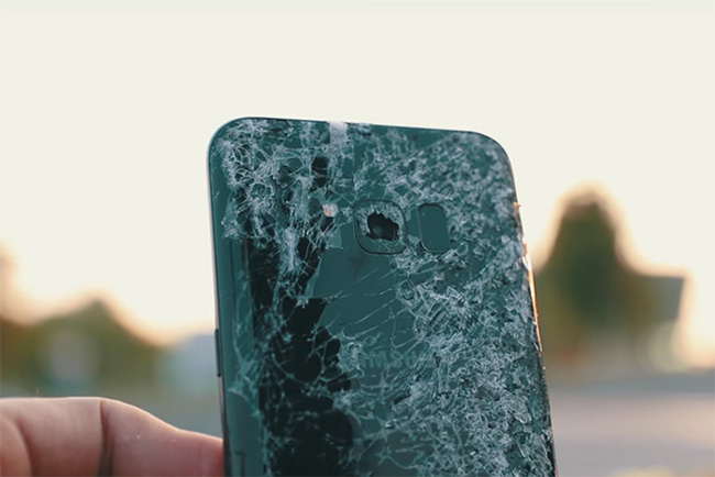 Dễ dàng nhận thấy, ngay sau cú tiếp đất Galaxy S8 đã vỡ nát nghiêm trọng phần kính ở mặt lưng bởi đây chính là điểm tiếp xúc với nền cứng. Trong khi đó, phần mặt trước của smartphone này lại ít bị ảnh hưởng hơn.