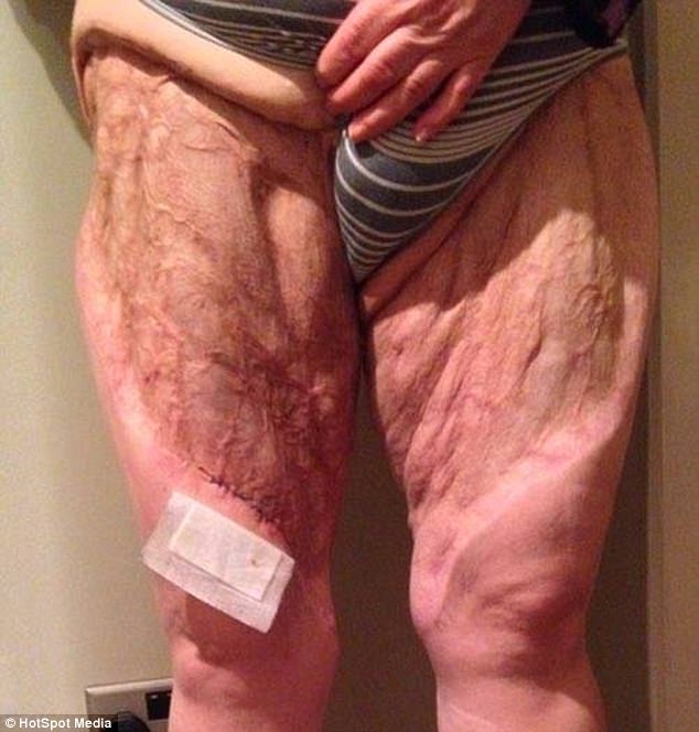 Vết sẹo kinh hoàng của Dana. Lớp da thịt dày gần 18cm của cô đã hoại tử và bị loại bỏ.