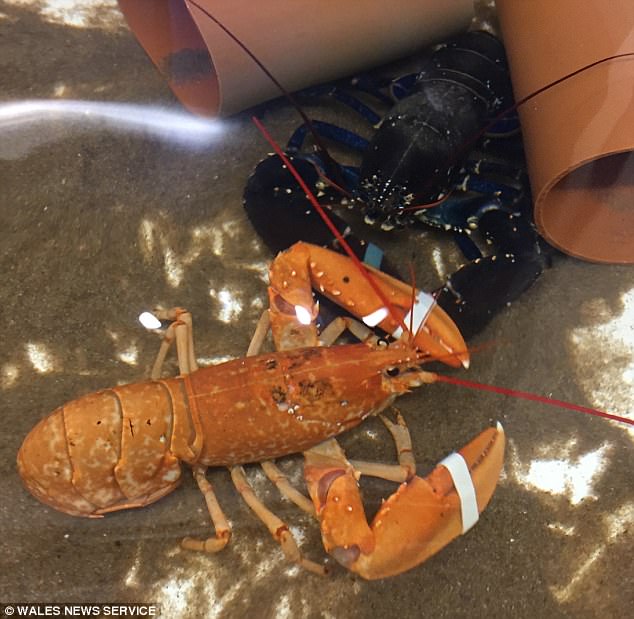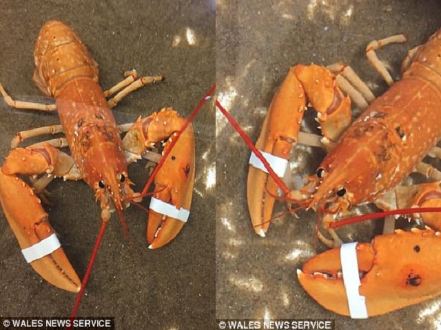 Tuy nhiên con tôm hùm này lại có màu cam ngay cả khi đang sống. Nó bị bắt ở biển Ireland - nơi cơ hội đánh bắt được tôm hùm da cam ước tính là 1/30 triệu.