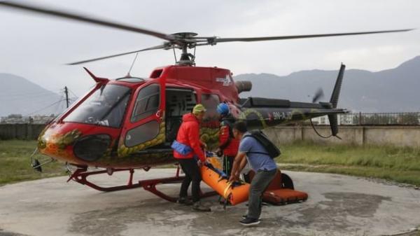 Ông Steck được đưa lên trực thăng cứu hộ để chuyển đến bệnh viên ở Kathmandu. Ảnh: BBC