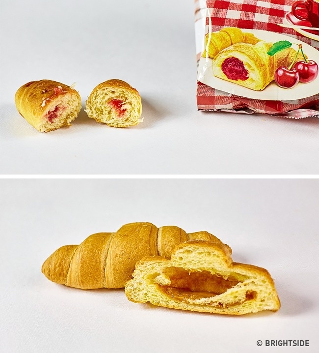 Tất nhiên, nhà sản xuất làm điều này để họ có thể tiết kiệm chi phí khâu nguyên liệu. Và người mua thì luôn hi vọng sẽ sở hữu chiếc bánh "cắn ngập mồm" sốt, nhân như trên bao bì, nhưng thực tế thì lại phũ phàng hơn thế.