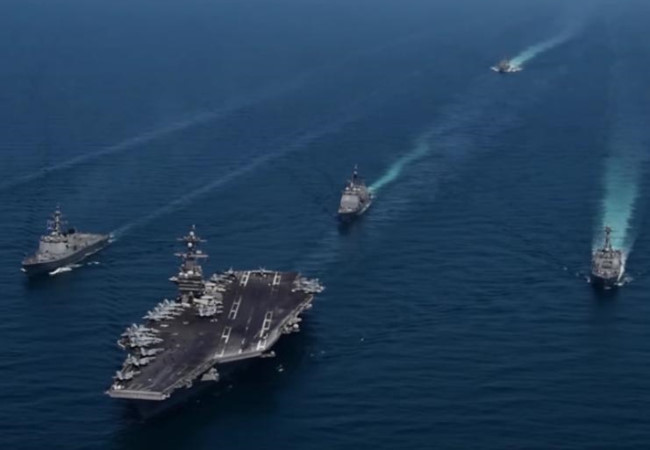 Cụm tấn công tàu sân bay USS Carl Vinson và tàu khu trục Hàn Quốc. Ảnh: RT