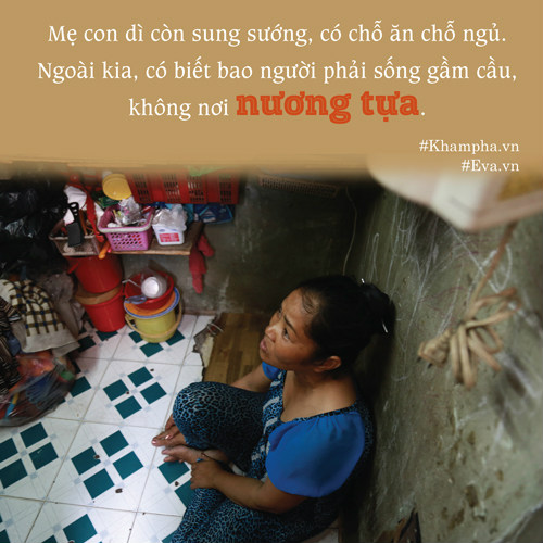 Vất vả quá nửa đời người nên khi quá khứ được gợi lại, người đàn bà góa đã khóc. Dường như, giọt nước mắt ấy chất chứa bao nỗi lòng, sự cực khổ và lo lắng cho đứa con gái đã lớn nhưng còn thơ. “Dì chưa một lần oán trách số phận. Nhiều đêm không ngủ, dì đã nghĩ về cuộc sống hơn 20 năm qua. Ngẫm lại, mẹ con dì còn sung sướng, có chỗ ăn chỗ ngủ. Ngoài kia, có biết bao người phải sống ngầm cầu, không nơi nương tựa. Hơn nữa, dì đã quen với cảnh chật chội, ngột ngạt khi ở trong ngôi nhà ấy”, bà Vân trải lòng.
