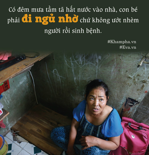 Không thể tưởng nổi hai mẹ con bà sống trong 1 "căn nhà" rộng tới...1m2. Ở trung tâm của quận 1 TP.HCM mà lại có một gia đình sống khổ sở như vậy chăng? Bà chưa từng 1 lần được duỗi thẳng chân ngủ một cách ngon lành trong hơn 7 năm qua.