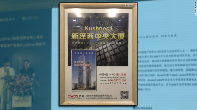Buổi giới thiệu kêu gọi đầu tư của gia đình Kushner ở Bắc Kinh do công ty Qiaowai tổ chức. Công ty này chuyên kết nối những tập đoàn Mỹ với các nhà đầu tư Trung Quốc. Hiện Qiaowai hợp tác với tập đoàn Kushner để thực hiện kêu gọi vốn cho dự án Kushner 1 ở New Jersey. Tài liệu về dự án cho thấy căn hộ này giống với khu ở Manhattan và sẽ tạo ra 6.000 việc làm.