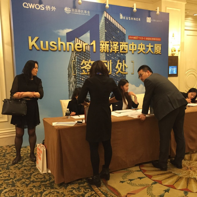 Trong vài giờ đồng hồ giới thiệu và thuyết trình, các đại diện của gia đình Kushner đã thuyết phục những doanh nhân Trung Quốc đầu tư hàng trăm nghìn USD vào một dự án căn hộ phức hợp ở New Jersey. Đổi lại, những người này sẽ được bảo đảm cấp visa diện đầu tư để nhập cư lâu dài vào Mỹ.