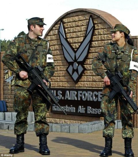 Binh lính Mỹ canh gác căn cứ không quân Ramstein Mỹ trên lãnh thổ Đức