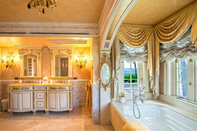 Phòng tắm cũng rộng và dát vàng xa xỉ.
