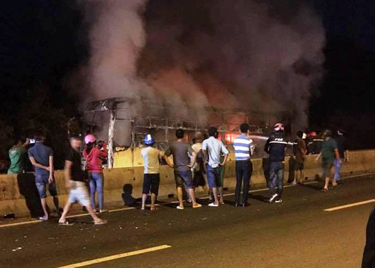 Thông tin ban đầu, xe khách giường nằm này của hãng P.N, đang lưu thông hướng Bắc – Nam. Khoảng 22 giờ 30 phút ngày 11-5, tài xế phát hiện cháy ở thùng xe phía sau.