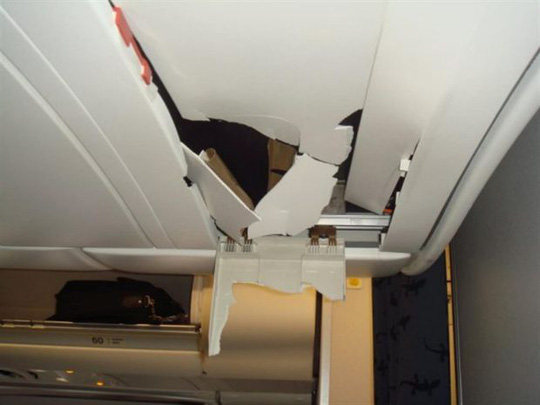Trần máy bay như bị người khổng lồ xé toạc sau cú chúi đầu thứ hai. Ảnh: SMH