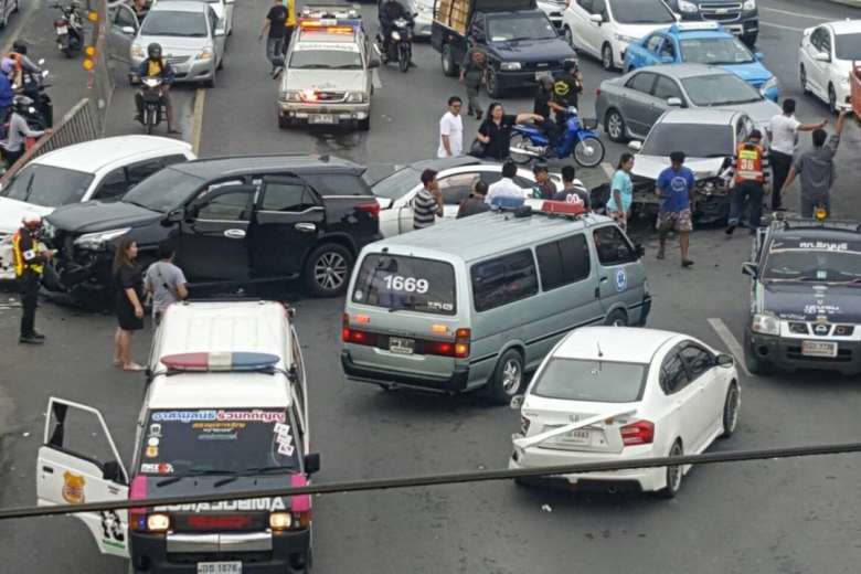 Vụ việc xảy ra tại đường Rangsit-Nakhon Nayok, quận Thanyaburi của tỉnh Pathum Thani, miền Trung Thái Lan. lúc 16h30 chiều 13.5 làm bị thương 6 người. Cú va chạm mạnh không chỉ khiến chiếc Toyota Fortuner, Mercedes lãnh đủ mà còn vạ lây sang 3 chiếc xe khác. Những chiếc xe này đều bị hỏng nặng.