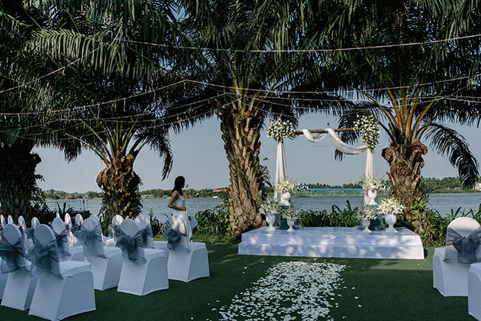 Đám cưới của đôi uyên ương diễn ra tại một nhà hàng nằm bên sông Sài Gòn thoáng đãng. Vì tiệc cưới phương Tây khác đám cưới truyền thống Việt Nam nên họ quyết định tổ chức 2 tiệc khác nhau cho nhà trai và nhà gái.