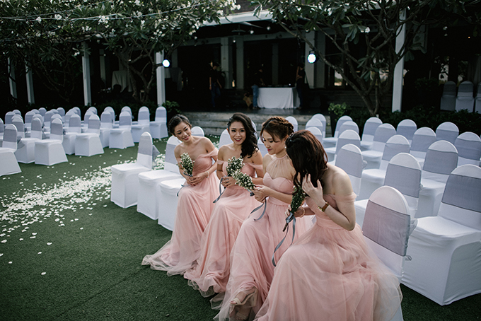 Dàn phù dâu xinh đẹp là những người bạn thân thiết của tân nương diện váy dài màu hồng phấn.