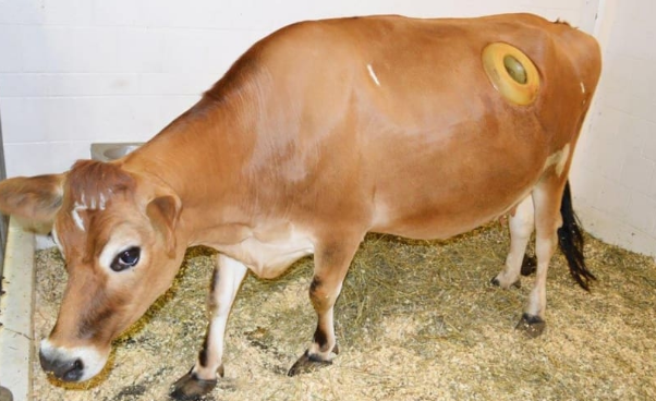 Thoạt nhìn một lỗ thủng rất lớn ở trên thân con bò có thể sẽ khiến bạn rùng mình.Người chăn nuôi bò sữa có thể đưa tay vào bụng bò qua cái lỗ này.Vậy họ tạo ra một chiếc lỗ như vậy để làm gì?