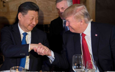 Chủ tịch Trung Quốc Tập Cận Bình (trái) bắt tay Tổng thống Mỹ Donald Trump trong cuộc gặp đầu tháng 4/2017. Ảnh: AFP.