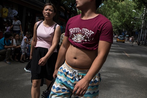 Từng có thời gian sống tại đây, Aaron Cai cho rằng cảnh vạch áo khoe bụng như “đầu độc thị giác” khách nước ngoài, tuy nhiên thói quen này không hề phổ biến với tất cả đàn ông Trung Quốc. Ảnh: Gilles Sabrie.