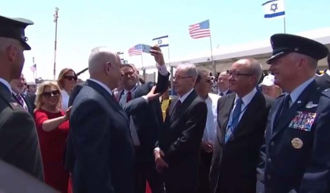 Hazan selfie với Trump dù Netanyahu đã ngăn cản.