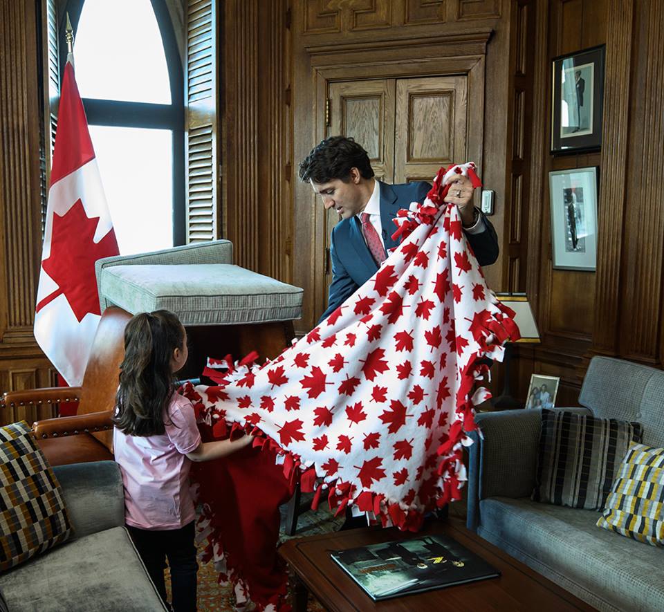 Old  Default Thủ tướng Canada cùng "Thủ tướng nhí" làm pháo đài bằng gối trong văn phòng