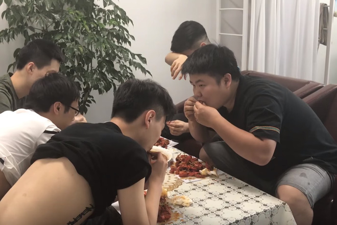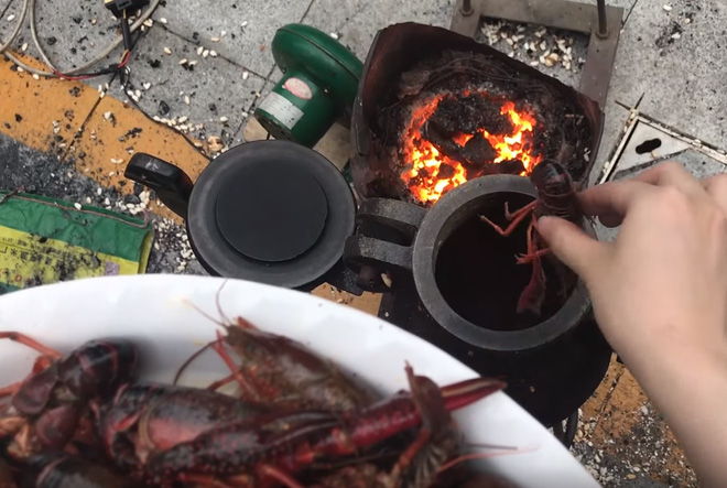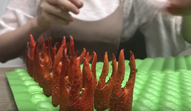 Cô dựng đứng càng tôm lên trên một tấm xốp tạo thành một "bàn chông" siêu sắc. Cô bắt từng đồng nghiệp bước ngang "bàn chông" càng tôm này để dạy cho các đồng nghiệp nam một bài học vì đã ăn trước mà không phần cô miếng nào.