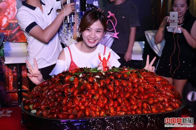 Với thành tích ăn liền tù tì hết 20kg tôm hùm đất, cô gái trẻ nổi tiếng ăn nhiều Mật Tử Quân, đến từ Trùng Khánh, Trung Quốc đã dễ dàng đánh bại đối thủ nam đến từ Ukraina để giành chức quán quân trong cuộc thi.
