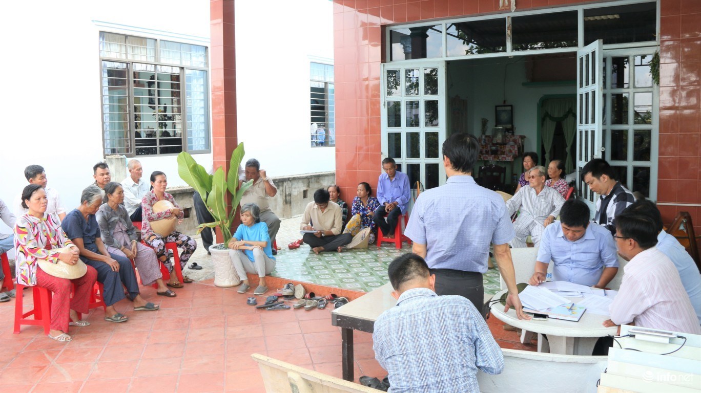 GS-TS Tô Văn Thanh, Phó Viện trưởng Viện KHTL Miền Nam (người đứng) và lãnh đạo UBND xã Nhơn Đức tại buổi họp nóng với các hộ dân trong khu vực bị ảnh hưởng.