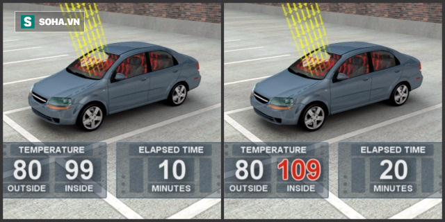 Để xe 10 phút dưới cái nóng 27 độ, trong xe sẽ nóng 37 độ. Thêm 10 phút nữa, nhiệt độ trong xe sẽ là 42 độ. Còn trên 90 phút thì cái nóng là 60 độ C.