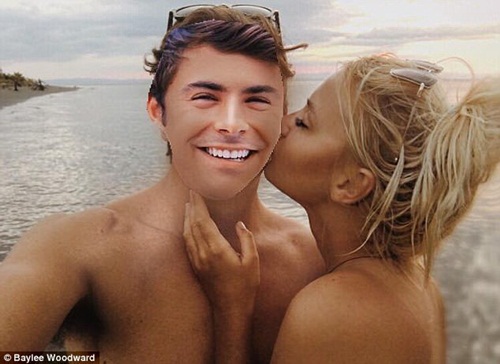 Cuối cùng, để đối phó với sự khó chịu đó, Baylee đã sử dụng một ứng dụng chỉnh sửa ảnh đơn giản, ghép mặt của nam diễn viên điển trai mình yêu thích là Zac Efron vào mặt của bạn trai cũ.