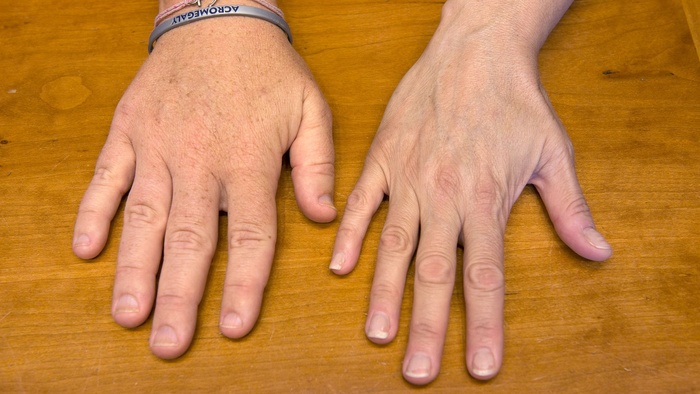 Bàn tay của bạn dần dần lớn hơn và ngón tay sưng lên là do hormone tăng trưởng tiết quá mức. Hormon tăng trưởng xảy ra tự nhiên trong cơ thể của chúng ta, chúng giúp xương phát triển và giúp bạn cao hơn. Hormon tăng trưởng quá mức sau tuổi dậy thì có thể dẫn đến bệnh to các viễn cực (acromegaly). Căn bệnh này phổ biến nhất ở phụ nữ từ 30 đến 50 tuổi.