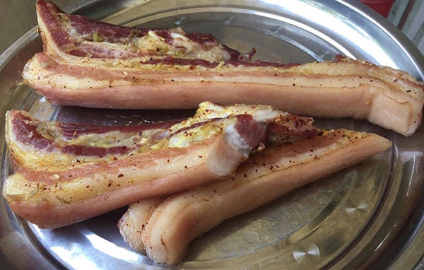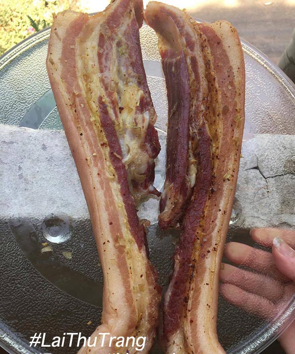 Món thịt ba chỉ một nắng của bà nội trợ Hà Thành ngay khi vừa trên mạng xã hội đã thu hút sự chú ý của rất nhiều cư dân mạng. Chị Thu Trang cho biết, chị phơi 2 miếng thịt ba chỉ, mỗi miếng 3 lạng trong suốt 6,5 tiếng đồng hồ, từ 6 giờ sáng đến 12h30 trưa nay 3/6 và kết quả vô cùng mỹ mãn.