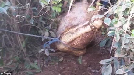 Nhiều người dân trong làng hoang mang và bất an khi con vật khổng lồ này xuất hiện.Hàng chục thanh niên trai tráng trong làng đã cùng nhau bắt con vật khổng lồ.Quá trình bắt giữ và di chuyển con vật khổng lồ đến 30 trai làng vẫn cảm thấy khó khăn.