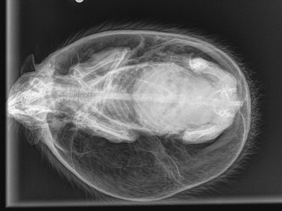 Con nhóm nặng 1kg được giải cứu vì tưởng đang mang thai. Hình ảnh chụp X-quang cho thấy nó bị một hội chứng hiếm gặp. Hội chứng bong bóng khiến cơ thể nở phồng gấp đôi bình thường.