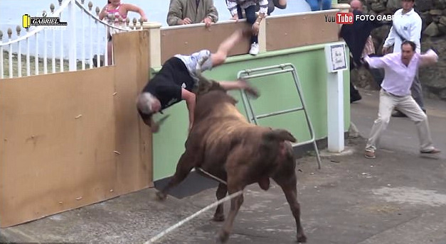 Theo trang Dailymail đưa tin ngày 13/6, một người đàn ông đã bị bò tót húc văng trong một lễ hội có tên địa phương là "Touradas à corda" tại hòn đảo Terceira, Bồ Đào Nha khi quá mải mê quay phim trên iPad mà không nhận ra còn bò tót đang lao tới.