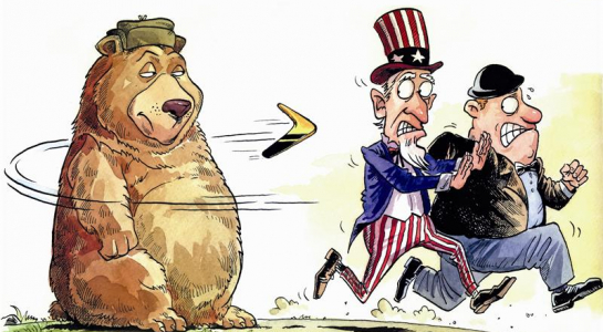 Tranh biếm họa mô tả kinh tế Mỹ và EU cũng thiệt hại khi trừng phạt kinh tế Nga