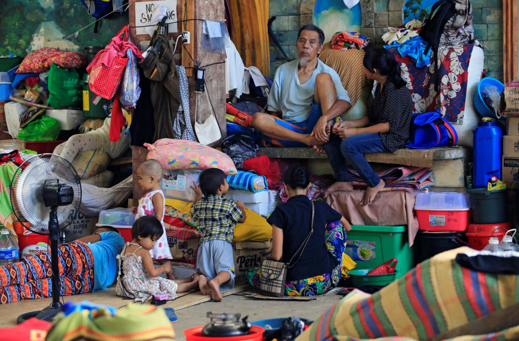 Khoảng 40.000 người Philippines đang sống tạm bợ trong những trại tị nạn kiểu này. Nhiều người già đã thiệt mạng khi phải ăn thức ăn không đảm bảo vệ sinh và ngủ trên sàn bê tông lạnh ngắt vào ban đêm.