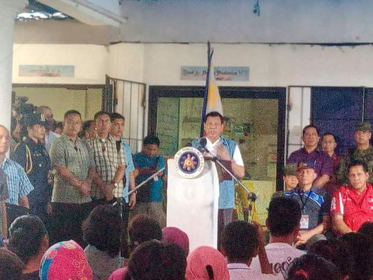 Tổng thống Duterte mới đây phát biểu tại một trung tâm sơ tán tạm thời của người dân TP Marawi. Tại đây ông đã xin lỗi cư dân TP Marawi.Đồng thời ông Duterte đưa ra cam kết mạnh mẽ trước người dân.
