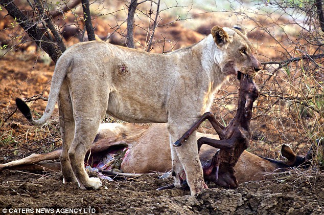 "Chúng tôi đã quan sát thật kỹ cách mà con sư tử cái đặt chú hươu nhỏ vào sâu trong bụi rậm. Nó huých huých chú hươu vài lần, sau đó, nhìn ngó xung quanh như thể cầu mong sự giúp đỡ".