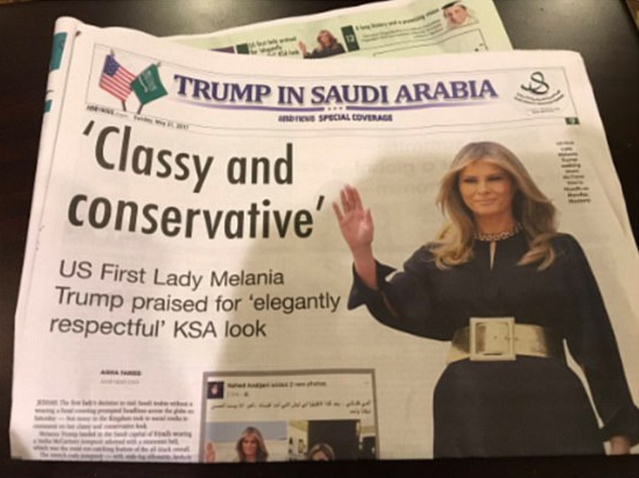 Chuyên san của một tờ báo Saudia Arabia khen ngợi đệ nhất phu nhân Melania Trump "quý phái và khiêm tốn". Ảnh: Washington Post