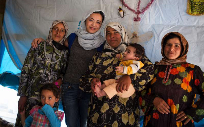Diễn viên nổi tiếng Diêu Thần của Trung Quốc thăm người dân tại một trại tị nạn ở Lebanon. Ảnh: UNHCR