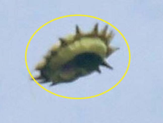 Khi phóng to bức ảnh chụp, có thể thấy vật thể này có dạng hình đĩa, dị dạng, xung quanh viền mọc rất nhiều chân tua nhọn gai góc.
