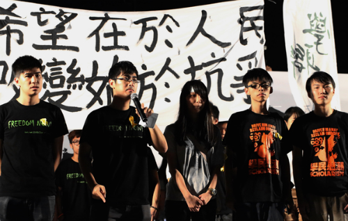 Các thủ lĩnh sinh viên lănh đạo phong trào biểu t́nh đ̣i dân chủ ở Hong Kong hồi năm 2014. Ảnh: New York Times