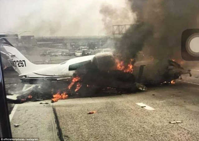 Vụ việc xảy ra lúc 9h35 ngày 30/6. Video do một tài xế quay và được phát trên truyền hình địa phương cho thấy chiếc Cessna 310 bay thấp rồi lao xuống cao tốc San Diego (405), bang California, theo Reuters.