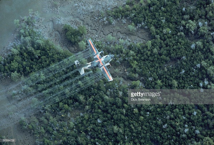 Được sử dụng như một thứ vũ khí phát quang, dioxin hay chất diệt cỏ vốn ban đầu chỉ có tác dụng diệt cỏ, phá hủy cây cối, hoàn toàn không ảnh hưởng tới người sử dụng hoặc người hít phải vào thời gian ban đầu. Nguồn ảnh: Links.
