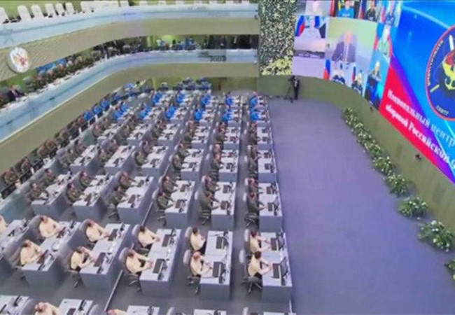 Một góc chỉ huy sở tác chiến của Bộ Quốc phòng Nga, nơi giám sát chiến trường theo thời gian thực