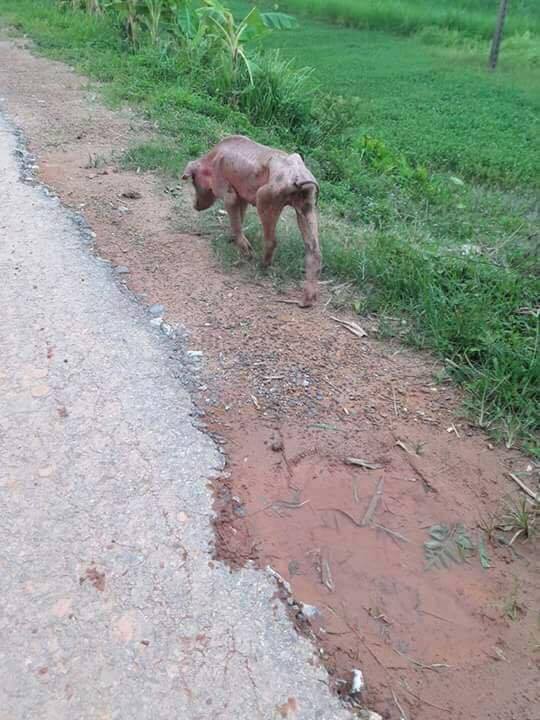 Old  Default Heo Việt nam gầy trơ xương lang thang trên đường kiếm ăn