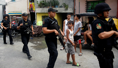 Lực lượng phản ứng nhanh của cảnh sát quốc gia Philippines được triển khai trong một chiến dịch trấn áp ma túy ở thành phố Mandaluyong, phía đông Manila. Ảnh: Reuters