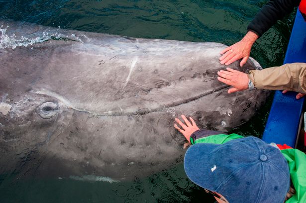 Cá voi là một loài vật khá hiền lành, thi thoảng lại gần con người. Tại Mexico, một chú cá voi con khá tò mò khi thấy con người. Được cá voi mẹ cho phép nên chú cá voi tiến lại rất gần các du khách để họ vuốt ve và chụp hình.