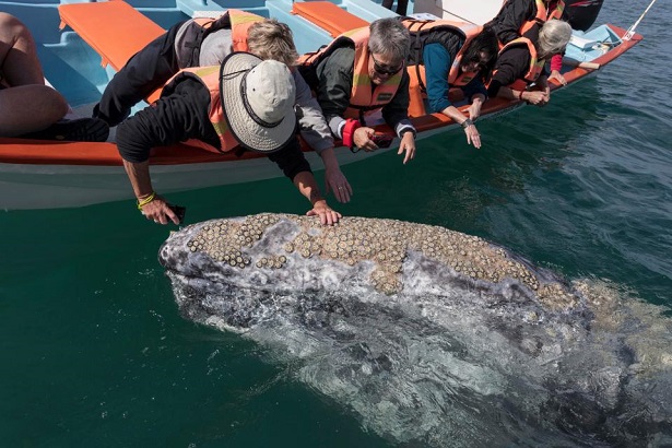 Cá voi xám là loài vật khá bình tĩnh và thường đến gần thuyền của du khách với mong muốn được vuốt ve.